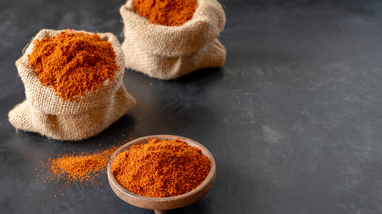 The standard paprika found in the grocery store is typically the sweet variety. It has a warm, barely sweet taste. If you are looking to use this as a chili powder alternative, it would help to add a bit of heat along with the paprika. As the name indicates, smoked paprika is essentially sweet paprika that has been dried using smoke. As a chili powder alternative it can add a bit of smokiness that lends itself to Tex-Mex flavors. Adding a bit of heat alongside smoked paprika will also result in a more well-rounded replacement. Hot paprika, also called hot Hungarian paprika, per BBC Good Food, is similar to sweet paprika except it is made with spicier Capsicum annuum peppers. Because it brings both earthiness and some spiciness, it is probably the most well-rounded paprika alternative for chili powder.