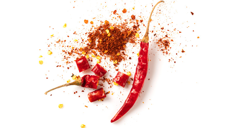 Native to South America and brought back to Europe by Christopher Columbus, cayenne peppers are the main ingredient in chili powder (via Sonoran Spice Blog). These thin red peppers are moderately hot and can be found in a wide range of cuisines, including Tex-Mex, South American, Creole, and various Asian cuisines.