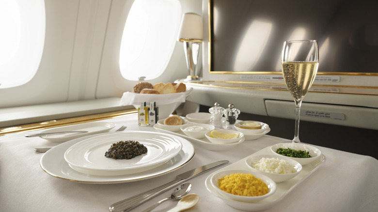 Since its modest founding in 1985 with a mere two aircrafts, per SuccessStory, Emirates has become an industry leader with a serious commitment to its inflight dining experience. By 2017, the Dubai-based airline was employing 1,200 chefs and treating inflight diners to 100 million meals per year on a catering budget of $1 billion dollars annually (via Emirates). It's not just the quantity, however, but the quality of food that distinguishes Emirates: from its monthly-changing menus and impressive wine list, per CNN, to its dedication to quality control. And that quality is about to become enhanced to an even greater degree now that Emirates has announced that it's funding over $2 billion dollars in additional upgrades to the already luxurious inflight experience.