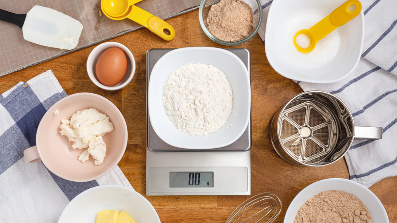 If you're dipping your measuring cup straight into a container of flour, and scooping up what you need before leveling it off with a knife, you're actually doing it wrong, and are using what might actually be the worst way to measure flour. That's because it's difficult to measure the right amount of flour that way. Flour has a tendency to compress or aerate, depending on how it's been handled, cautions Serious Eats. Add in differences in the forcefulness of the scoop, which could pack down the flour further, and you're looking at different amounts of flour per scoop, a variance that could lead to 30 to 50 percent more flour, warns All Recipes. Luckily, there is a better way to measure your flour.