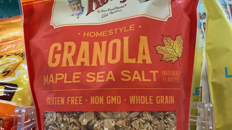 Bob's Red Mill makes delicious oat products, including various forms of tasty granola. One of the company's top achievements is the Maple Sea Salt in the "homestyle" category. The pure joy of a tall stack of buttery, crispy-edged pancakes doused in real maple syrup isn't exactly conducive to snacking. Ever seen someone whip up a few pancakes and break out the maple syrup for a snack, or grab a plate of flapjacks from their work desk drawer during the 3 p.m. slump? Probably not. Also, gluten-free pancakes can be hard to find, and, when found, are somewhat lackluster or even just bad. But a bag of this whole grain, golden-brown, toasted granola full of wholesome seeds and sweetened with liquid gold (plus a little brown sugar) is gluten-free and ready whenever you are. It's homey, delicious, and seriously does it all.