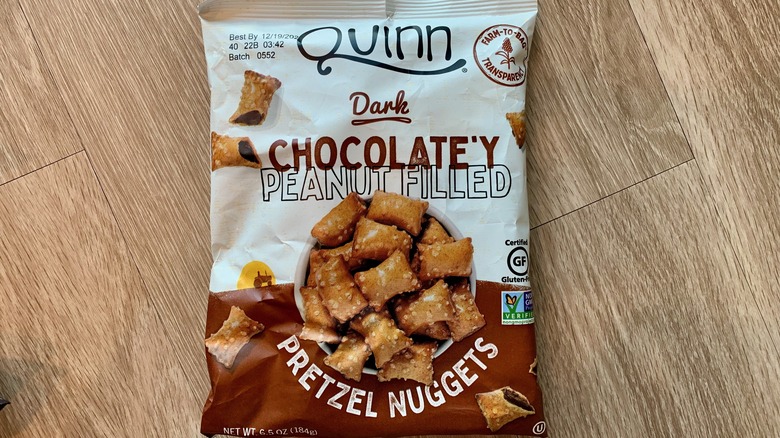 Peanut butter pretzels are just so, so good, people. Everyone goes crazy for the Trader Joe's version or the giant tub of Kirkland Signature ones from Costco. But unfortunately, it can be really hard to find those beloved peanut-butter pretzels, or any pretzels, that are free of gluten. Quinn saves the day, and in more ways than one. The ambitious brand is "on a mission to advance 99% of agriculture by partnering with conventional growers who want to take the first steps to improve their practices." Founded by a mom who wanted to do right by her new baby son, named Quinn, by nourishing him with chemical-free foods, it's a great source for anyone passionate about where their food comes from. It's also a great source of gluten-free peanut-filled pretzels, which is why you're here.