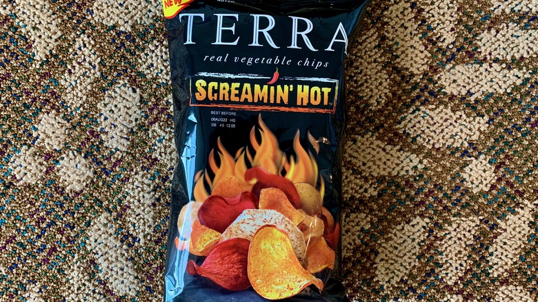 Okay, vegetable chips don't necessarily scream — get it? — snack sensation. Terra chips have been around for a while in their elegant black bag, the multi-colored veggies waterfalling out artistically into the limelight. The vegetables also aren't exactly the most well-known or Instagram-famous ones: no kale leaves, broccoli florets, or seaweed fronds in sight. Instead, you find a rainbow of humble root veggies like taro, two colors of sweet potatoes, yucca parsnip, and batata. Seriously, how can a parsnip be turned into a near-perfect chip? Terra's doing the most, especially when they turn up the heat just a little bit with the Screamin' Hot flavor.