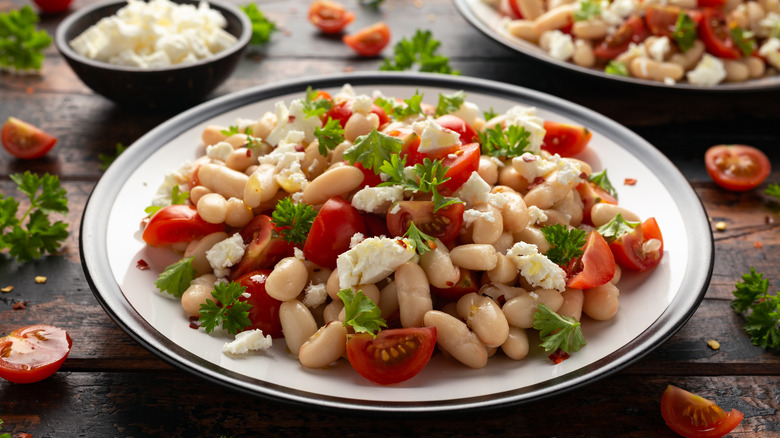 Of course, just because beans are the base of this dish, that doesn't mean you have to forgo the greens entirely. Throwing a handful of shredded lettuce or arugula into your bean salad is a great way to get some more greens in and add an extra pop of freshness and flavor.