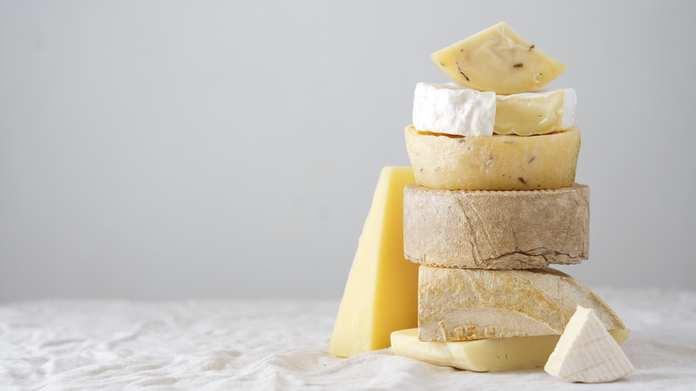 Although you should always start with a cream cheese base, SimplyRecipes explains that when it comes to adding other cheeses, it's best to stick to semi-soft or semi-firm cheeses. Think Gouda, cheddar, Fontina, goat cheese, Brie, blue cheese, or Monterey Jack. This is because a firm or dry cheese like Parmigiano Reggiano has a totally different consistency that will be too crumbly, grainy, and gritty, making it difficult to blend into a ball when compared to a softer, more malleable cheese. Essentially, like goes with like.