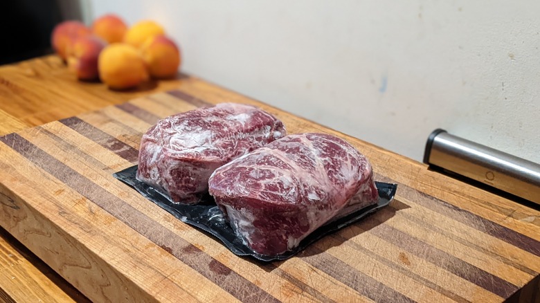ButcherBox sent us a sample delivery of its best-selling beef products. Its bill of lading included strip steak, flat-irons, rib eye, burger, filet mignon, and top sirloin: 7.25 pounds in all. The meat arrives at your door frozen, or near enough, that you won't worry about the quality concerns of stowing it in the freezer until you can work your way through this impressive array of animal protein.