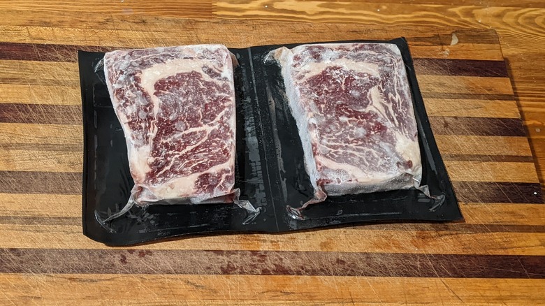 All of the beef arrived in vacuum-sealed, individual packs on joined plastic backgrounds — your meat will stay grouped by its label so you don't mix anything up until you choose to cut it apart (which you may do for ease of storage).