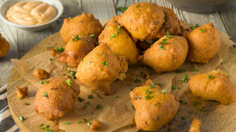 According to Serious Eats, it's not likely that any of these hushpuppy origin stories are fact. In most cases, they're just tall tales, passed down from generation to generation. Battering and frying food was not a new concept in the south during the 18th and 19th centuries. The hushpuppy recipe itself might have come from a formerly enslaved man named Romeo Govan in South Carolina (per Discover South Carolina).