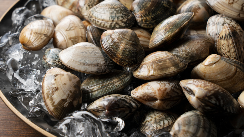 According to Kitchn, tightly closed clams indicate that the bivalves are still alive and healthy — which is, of course, the type of clam you're going to want to eat. If the clams are a little bit open, you can flick the shell to check its reflexes, the outlet notes. If the clam is alive, it will close up immediately. Because dead clams can harbor bacteria that will spoil the meat, you want to make sure to choose live ones. Note that there's one exception to this rule, and that's with soft-shelled clams. Due to their long neck, they can't close completely, so you can follow the other guidelines to choose fresh ones (via Bon Appétit).