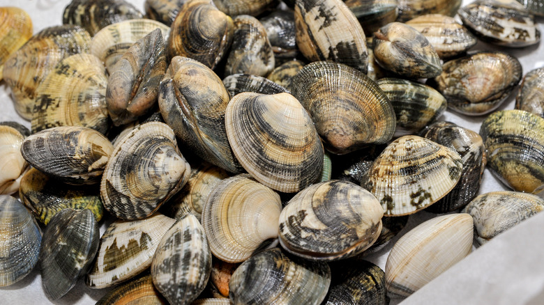 If you love clams so much that you've been known to prepare them at home, then you're probably already familiar with some of the basic guidelines to follow when buying them, from discarding any with chipped or cracked shells (via Striped Spatula) to making sure there's no strong odor coming from the clams (via Seafood Health Facts). And though those are good rules of thumb, we haven't even mentioned the first thing you should look for.