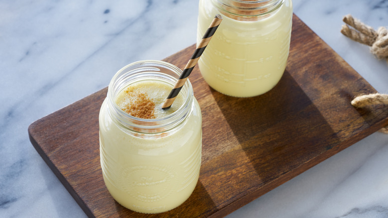 But it wasn't the alcohol that accounted for eggnog's enduring links with Christmas and the holiday season. Rather, according to Insider, it was the drink's inclusion of spices like nutmeg and cinnamon, which were considered emblematic of seasonal wintertime cheer. Of course, just because eggnog has a long history with Christmas doesn't mean lovers of the nog need to wait until December to enjoy its creamy goodness. Nor, for that matter, are eggnog aficionados compelled to use its namesake ingredient: egg. As it turns out, there's a fruit substitute that both looks and tastes strikingly similar.