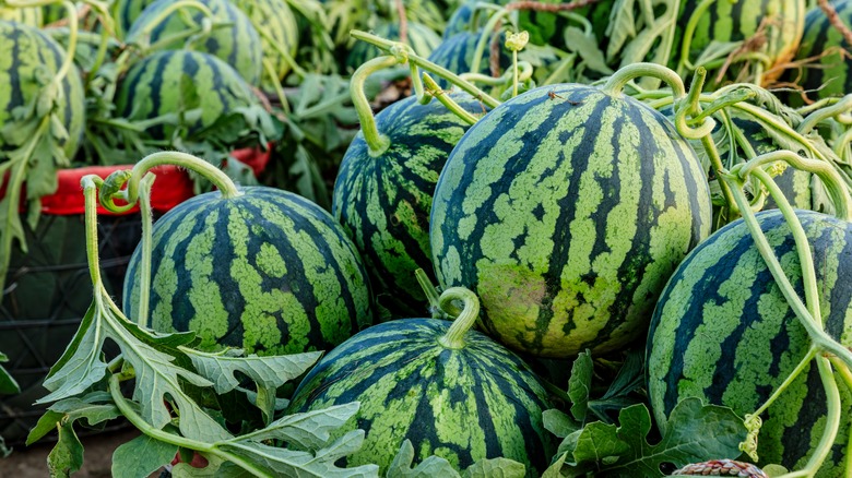 This next tip is shocking, and you may be thinking to yourself, "why in the world is it a bad idea to refrigerate watermelon?" Watermelon should only be placed in the refrigerator under two conditions: if it has already been cooled (like the chunks pre-packed at the grocery store) or if it is cut. A whole watermelon in the fridge not only takes up a lot of space but can also negatively impact the taste, texture, and color of the fruit. Studies by the USDA's Agricultural Research Service revealed that refrigerating whole watermelons causes a loss of antioxidants that were not observed in watermelons left out at room temperature. Instead, leave your uncut watermelon on your kitchen counter for up to ten days — or until you are ready to slice it.