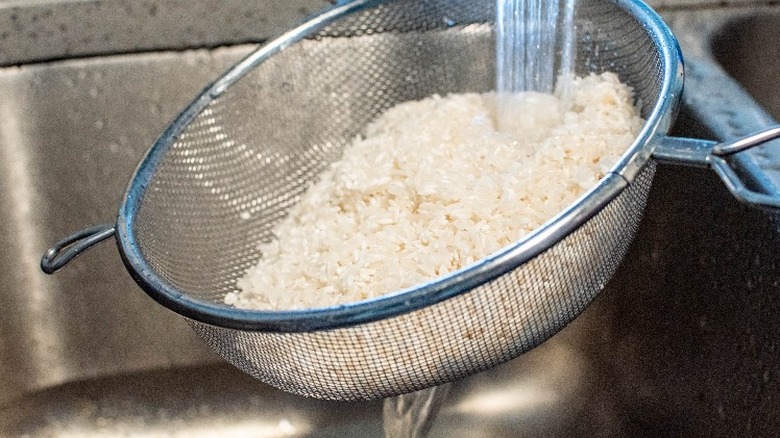 - Rinse the rice thoroughly, running under water until the water runs clear. Set aside until ready to use.