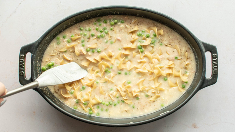 Tuna casserole is an American comfort food classic, a dish recipe developer Michelle McGlinn describes as "a beloved favorite of Midwestern families for ages." (The 1950s, in particular, may have been its heyday.) She says that tuna casserole — and, indeed, any casserole — is something that is meant to be "cheap, easy, and delicious," adding that tuna casserole is a particularly simple dish because "it uses cheap non-perishables, so it is easy to make at any time." That being said, she's chosen to make a version of it that she says is "a little more grown-up" than the standard version.