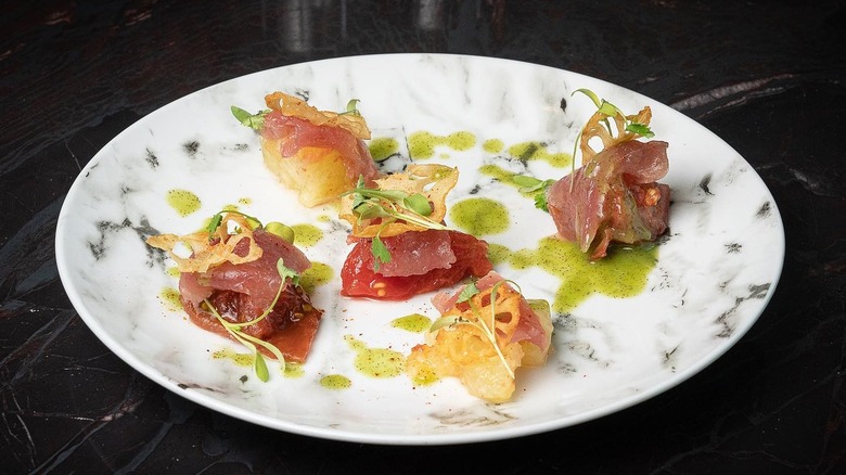 José Andrés is a James Beard award-winning chef known for creating meat-forward dishes that make the mouth water. His restaurant, Bazaar Meat at the Sahara Las Vegas, is no exception. Between the creative cocktails and the artistic atmosphere, everything at Bazaar Meat works together to live up to the hype and prove why two of José Andrés' restaurants have been awarded Michelin stars (via Michelin Guide). From large group dining to intimate date nights, this is a high-end spot that is sure to satisfy die-hard carnivores.