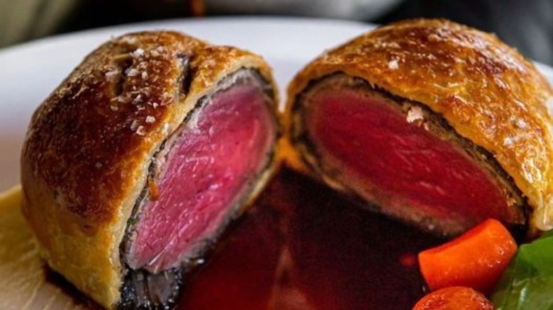 Hell's Kitchen by Gordon Ramsay is located at Caesars Palace. As should be expected with a restaurant from the highly decorated celebrity chef, the experience does not disappoint — as long as you're not expecting a meal filled with chaos and insults. The undisputed highlight of the fairly limited menu is Ramsay's iconic beef Wellington (via Las Vegas Magazine). Available for lunch and dinner, it is a no-brainer for meat lovers. Other highlights include lobster risotto, baked macaroni and cheese, and steak tartare.