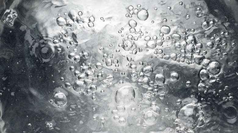 So, why does water seem to bubble furiously when a handful of salt is tossed into simmering water? Apparently, it's a bit of an illusion. According to The Naked Scientists, salt crystals act as nucleation points that make it easier for bubbles of vapor to form since they disrupt the structure and surface tension of the water. The result is more intense bubbling — at least initially.