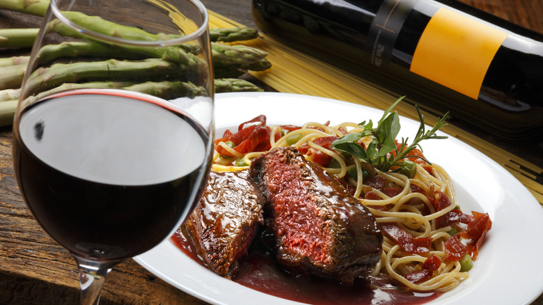 Another red wine that pairs well with leaner cuts such as filet mignon is Touriga, which comes from the Touriga Nacional grape in Portugal. "The fruit character on it is dark-fruited, with some serious plushy tannin," Michele Gargiulo, Certified Sommelier, Certified Specialist of Wine, Executive Bourbon Steward, and Certified Sake Advisor, told Tasting Table. It is structurally like Merlot but more earth-driven." In the end, you can try wine recommendations, but be sure to always drink what tastes best to you.