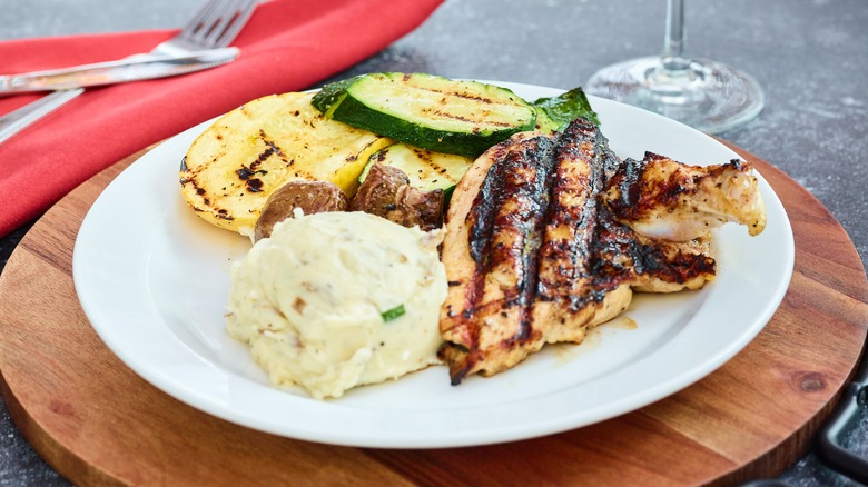 Either way, it's a delectable cut of meat, and one you may not find in your typical grocery store. Jenni Harris, director of marketing at White Oak Pastures, states that airline chicken breasts are found in more "upscale butcher shops." If you're willing to break down a chicken and create the airline breast yourself, chef Jacob Burton has a YouTube video on how to do it. From there, you can sear it in a skillet just like you would an ordinary chicken breast, adding a few more minutes to the timer to account for the extra meat.