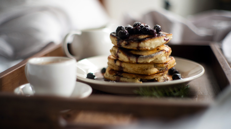A frequent error people make when making pancake batter is mixing it for too long (via King Arthur Baking Company). It is only natural to want to break up all the lumps in the mixture. However, minor lumps are not anything to worry about when it comes to pancakes. The bigger worry here should be about the gluten in the flour because overworking it can be detrimental to your pancakes and their texture. Flour is a fragile ingredient in this context. While allowing the gluten to develop is preferred for baking sturdier types of pastries, this is something you want to avoid with pancakes.