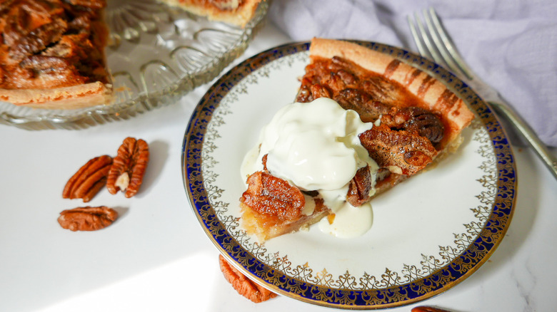 If you happen to have leftovers, be sure to keep them. "This pecan pie can be kept wrapped in plastic wrap or foil for up to four days in the refrigerator," Dalton shares.
