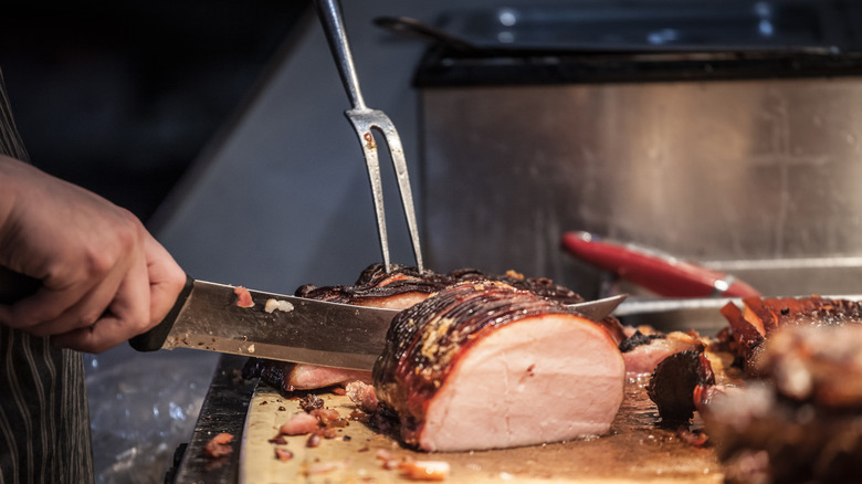 For most Americans, what we know as Canadian bacon is much more like ham than traditional bacon (via Kitchn). It's cut from a cured pork loin, which may or may not have been smoked. Canadian bacon is leaner than strip bacon, which comes from the fattier pork belly. Slices of Canadian bacon are round, making them the perfect size and shape for a breakfast sandwich or the classic eggs Benedict.