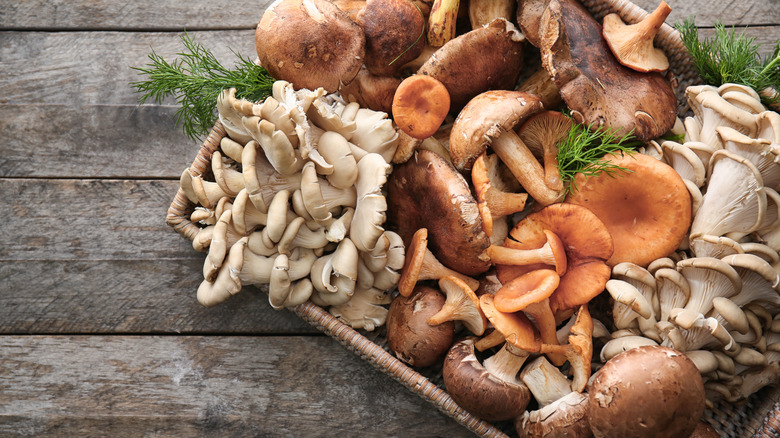 Somewhere between a white button mushroom and a portobello, creminis are firmer and darker than white buttons, but more versatile in size than portobellos (per The Kitchn). Cooking quickly, cremini mushrooms are absolutely delish when sautéed quickly with butter and herbs, making a hearty side dish for any steak. Alternatively, they are ideal for throwing right into the pan alongside a steak (according to Foods Guy). In addition, they hold up well when cooking in liquid, and are an ideal base when making a creamy mushroom sauce, since they are perfect for infusing flavor. If you're looking to try something a little different, dried mushrooms contain more umami flavor, so even a dusting of dried mushroom (especially cremini) over your steak will enhance its flavor and add some earthy undertones (per The Mushroom Council)!