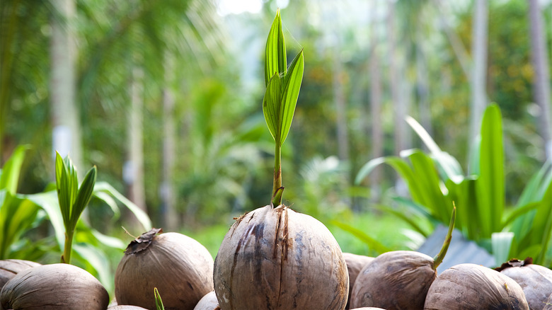 The island nation of Indonesia grows the most coconuts in the world, producing an astounding 16.82 million metric tons in 2020 (via Statista). The Phillippines and India trail not too far behind, with the three countries accounting for over 70% of global production. Most international coconut trade stays within Asia, as Thailand and Malaysia are the top importers, outlines Business Wire.