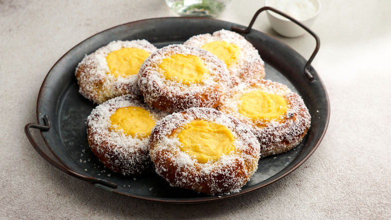 Thanks to Disney, many of us think of Norway and imagine sassy, talking snowmen, irascible reindeer, and towering castles of glittering ice. After experiencing skolebrød, though, we may find ourselves irrationally jealous of the Norwegian school children who get to enjoy these wonderful, custard-filled sweet buns. Skolebrød translates from Norwegian as "school bread." It's also called skoleboller, or "school buns," in some parts of Norway. North Wild Kitchen tells us that skolebrød can be bought at bakeries, cafes, grocery stores, and even gas stations all over Norway — and home bakers prepare the delectable treats as well.