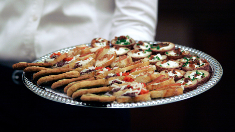 Two tricky terms that are often thrown about and used interchangeably are hors d'oeuvres and canapés. If these words bring to mind images of elegant, carefully crafted morsels served during cocktail parties or before meals, then you've got the right idea. The Culinary Pro explains that both terms refer to bite-sized finger food served separately from the main meal. However, the terms have distinct definitions. So if you're going around referring to crudités as canapés, you might want to brush up on your vocabulary.