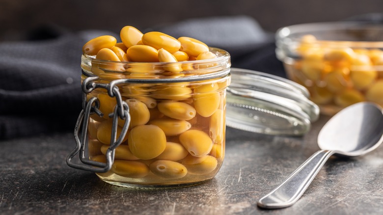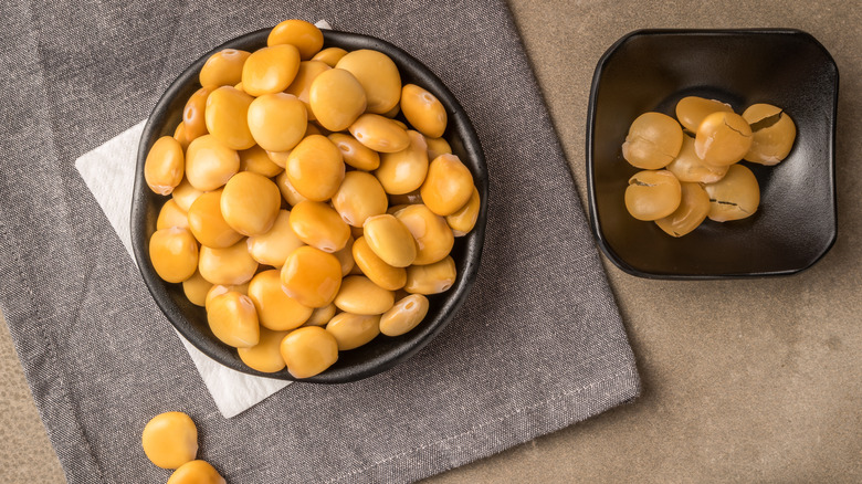 One of the keys to enjoying lupini is making sure they are prepared correctly. Like other beans, it is possible to buy lupini as dry beans and let them soak before cooking them. The problem is that lupini need a far longer soaking period than other beans. According to Nonna Box, the older, bitter variety of lupini can require three to four days of soaking in brine before they are safe to consume. This is because the brine is meant to draw out the alkaloids present in the bean. These alkaloids are toxic when consumed in large quantities and the brine will need to be changed multiple times to draw them out completely. There are also sweeter varieties available that require less soaking time.