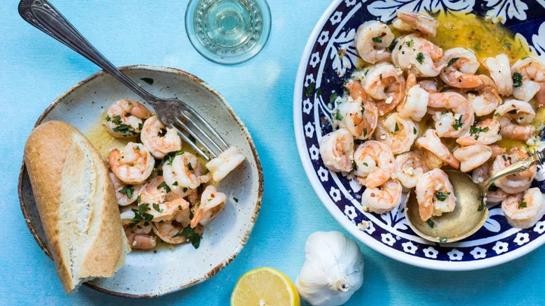 Garlic. Butter. Shrimp. It's all there in the name, and if those three ingredients don't have you salivating, we don't know what will. In this quick and easy recipe, medium-large shrimp are sautéed in olive oil, then tossed with a sauce of butter, white wine, lemon juice, garlic, and red pepper flakes. Once garnished with chopped fresh parsley, they're ready to be eaten alongside good, crusty bread — and perhaps a glass or two of that white wine used in cooking them.