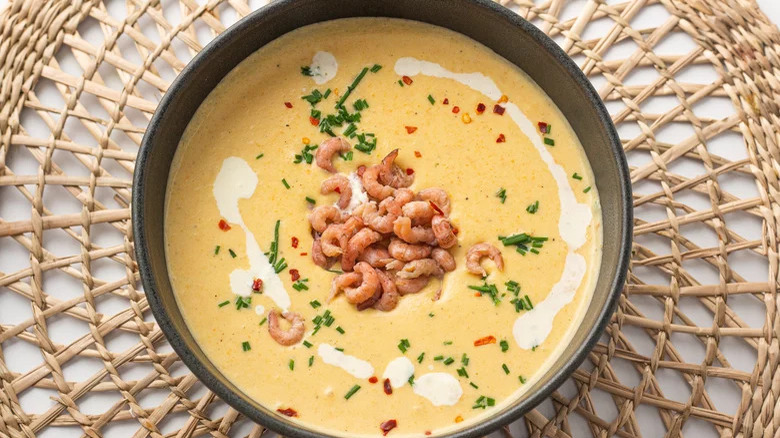 If you've only ever sipped bisque — essentially a smooth shellfish soup that's thickened with a starchy ingredient and enriched with plenty of cream before serving (via MasterClass) — while dining in a fancy restaurant, we have a secret to share: Making bisque at home isn't all that complicated. In this straightforward recipe, potatoes, onions, and carrots are cooked with shrimp and vegetable stock, blended until smooth with heavy cream, then served in bowls with additional cooked shrimp and chopped parsley on top. Add some crusty bread, and you've got a restaurant-caliber meal right in the comfort of your own home.