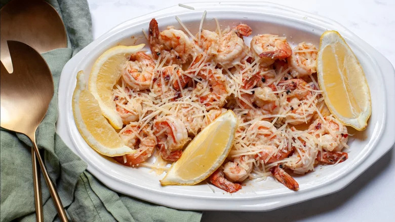 If you love cheese — and really, who doesn't? — then you've probably tried your fair share of "Parmesans," from chicken to veal to eggplant. But have you ever tried shrimp Parmesan? A less common — but just as delicious — take on the dish, this version features lightly sautéed shrimp flavored with plenty of garlic, lemon juice, and red pepper flakes, then showered with a generous amount of grated cheese. Best of all? The dish comes together in just 10 minutes flat.
