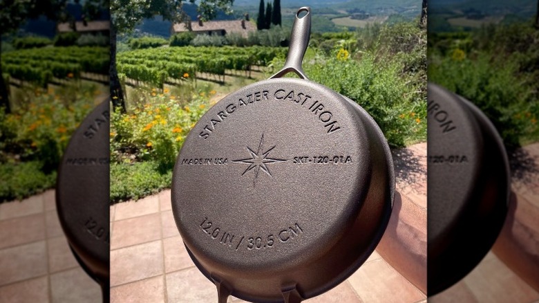 Stargazer cast iron products are designed to be lightweight and smooth to the touch, according to online retailer Cook Culture. We love Stargazer's flared rim, which makes pouring super simple. The extended handle, along with the fork design for maximum airflow, also allows the user to keep safe proximity to the hot base. Consumers can purchase the cast-iron skillets from Stargazer in one of two finishes: bare and seasoned. Bare pans arrive coated in oil, according to Thrifty Nifty Mommy, while the seasoned skillet will have already been pre-seasoned and are ready for use straight out of the package.