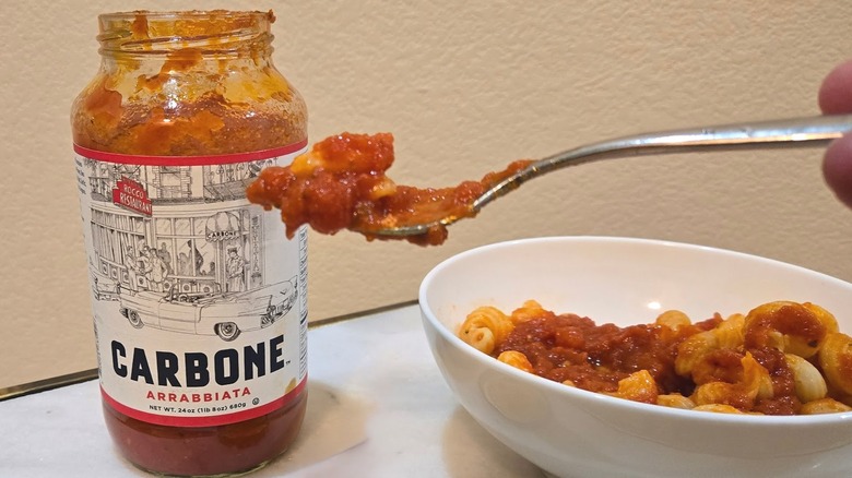 To decide if Carbone's $10-a-jar sauces are worth dropping a Hamilton on, I collected an assortment of options available locally in my city or online via Amazon. From there, I conducted a taste test, first by trying each sauce on its own without pasta. Then, I warmed a few spoonfuls of each and added it to hot bowls of cavatappi pasta. In doing this, I was able to evaluate if the flavor had changed, improved, or worsened once pasta was introduced.