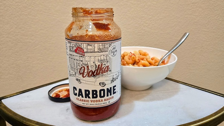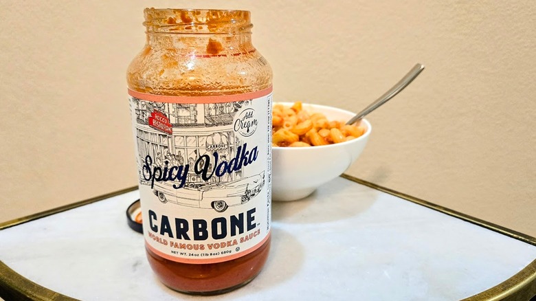 Pasta with spicy vodka is a dish that has gone viral after supermodel Gigi Hadid posted about it on Instagram in 2020, and Carbone's $34 spicy rigatoni pasta dish on its New York restaurant menu has garnered dozens of copycat versions across the internet. Thankfully, the restaurant opted to add the spicy vodka sauce from their famous dish to a jar, so all you have to do is add it with butter and cream to your favorite type of pasta for the much more reasonable price of around $10 per jar. You can even get this jar of Carbone sauce delivered with a home delivery service straight to your door.