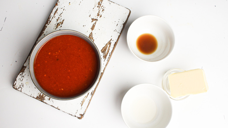 Gather the ingredients for this buffalo wing sauce