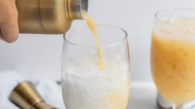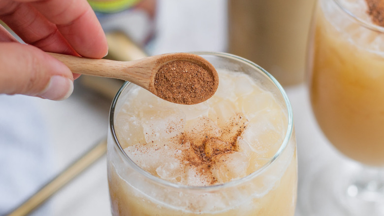 - Strain the cocktail into 2 highball glasses filled with ice. Top each glass with a sprinkle of nutmeg.