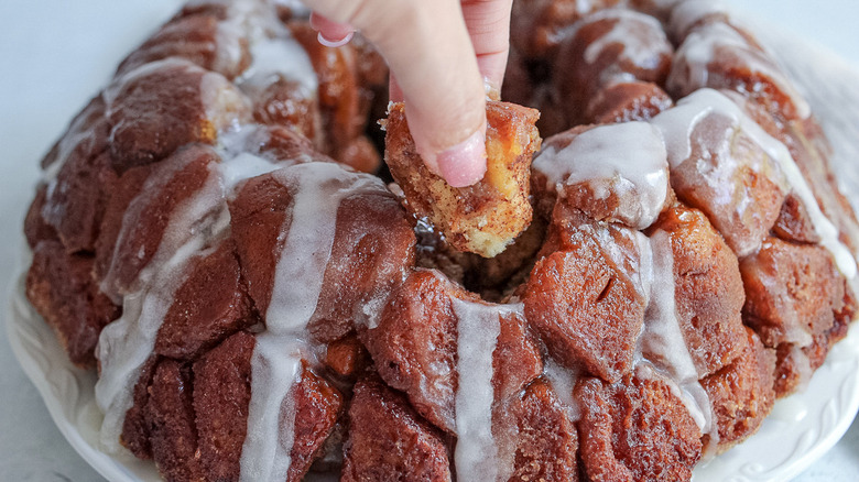 These days there are all manner of monkey breads both sweet and savory, but recipe developer Jessica Morone's version sticks pretty close to the original apart from one notable twist. As she tells us, "This recipe is special because it uses canned cinnamon rolls, which makes this monkey bread even more packed with cinnamon flavor." She also notes that "canned cinnamon rolls come with frosting that you can top this monkey bread with" and describes the resulting bread as "a sweet, gooey treat."
