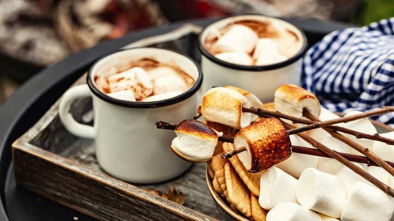 Using a coffee maker is a great way to make hot chocolate in bulk and keep it warm for a group of people. If you're using a powdered hot chocolate mix, simply add the mix to the carafe and read the directions on the package to determine how much water to add to the reservoir. After the brewing cycle has completed, use a long spoon to stir your hot chocolate and ensure all the powder has been dissolved (via Art of Barista).