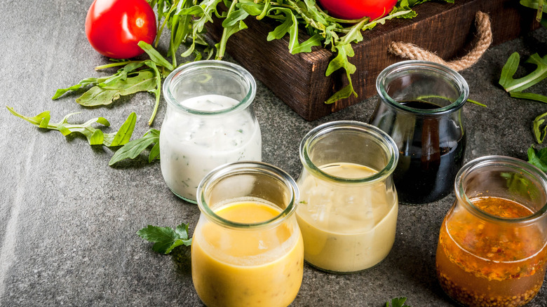 While Caesar dressing may be a popular choice for salad, creamy, tangy ranch is the undisputed favorite in the United States for everything from dressings and dips to sauces and marinades. The iconic blend of cream, herbs, and alliums can be incorporated into deviled eggs in a number of ways whether in liquid or powder form. Blend powdered ranch dressing mix with the typical yolk and mayonnaise mixture for some added oomph to your deviled egg filling or skip the mayonnaise entirely, replacing it with the herbaceous dressing. For a different flavor profile, give some other creamy dressings a try such as Russian, Thousand Island, blue cheese, or honey mustard.
