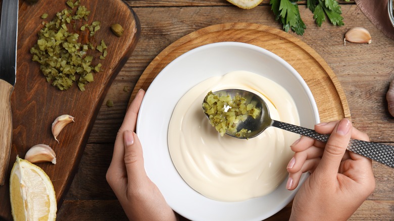 This ingredient could be a lovely addition to your deviled eggs and might even give you a shortcut. First, what is tartar sauce, and what does it taste like? Tartar sauce is a condiment commonly made with mayonnaise, making it the perfect contender for deviled eggs. Aside from the mayonnaise, it usually has other add-ins like chopped pickles, olives, onion, or capers. Using it in your deviled egg mixture will undoubtedly elevate the texture, whether you are using homemade tartar sauce or store-bought. The sweet and savory flavor of the condiment will taste great in the filling and save you time on chopping pickles or adding relish.