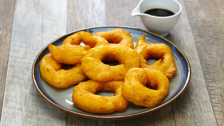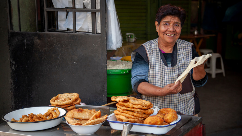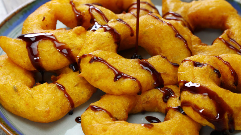 Like a lot of traditional Peruvian dishes, picarones were inspired by dishes from foreigners. A descendant of the Spanish buñuelo, the picarone is a golden brown fritter that uses distinctly Peruvian ingredients and spices, per Atlas Obscura. At first glance, they may not look so different from donuts, but they are actually quite distinct due to the key ingredients in the batter.