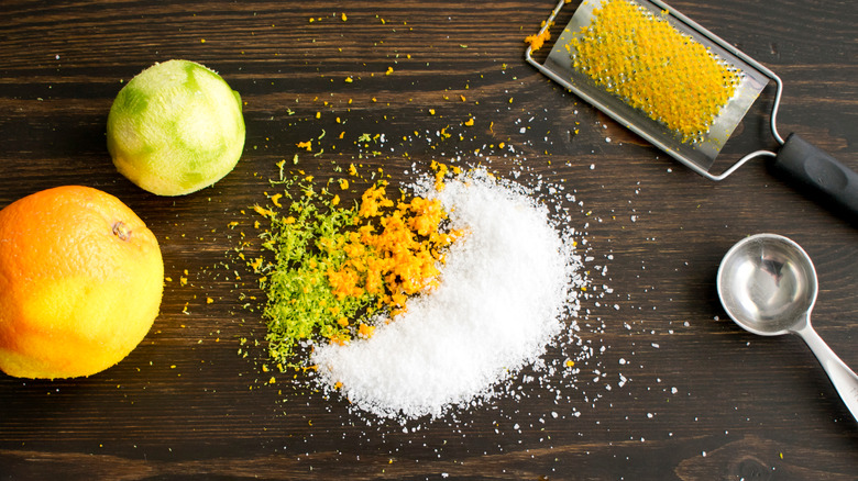 While classic margarita recipes call for tequila, lime juice, agave nectar, a citrus liqueur, and ice, you can amp up your blend by not only adding a bit of lemon juice to the mix but also adding lemon and lime zest, per ATK. Citrus zest has a purer citrus flavor than the juice alone, plus it doesn't add any extra acid to the mix. ATK suggests that you allow the lemon and lime zest to steep in the sour mix for as long as you can. The longer it steeps, the more bright citrus flavor you get. Epicurious notes that allowing zest to steep in your mix for 24 hours is preferable, but the flavor will still be wonderful if you steep for a minimum of four hours. Next time you want to have margies at home you'll have all the secrets to make your best batch yet.