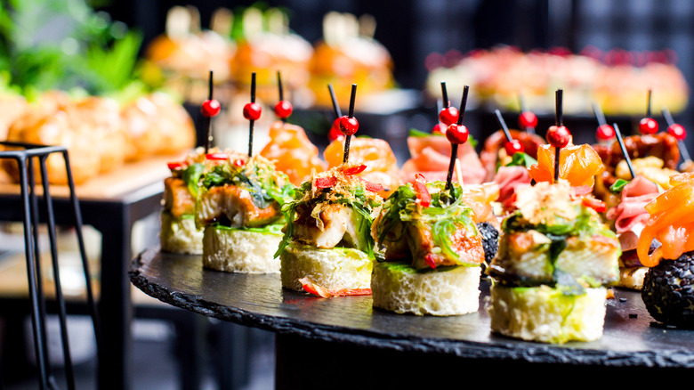 Canapé is the French word for "couch." The living room sofa. The sectional. Food blog The Canape Kitchen, suggests that, while the term is all-encompassing of any type of couch, it best describes something stylish and sophisticated, like a settee or maybe a Chesterfield. Perhaps this is because people tend to eat their canapés in the living room while chatting as opposed to eating a meal at the dining room table. Not really. According to PBS, the term came about in France in the late 18th century when someone (probably an upper crust family's house chef) sat their traditional hors d'oeuvre on top of a piece of bread. The creation was reminiscent of a person sitting on a couch.
