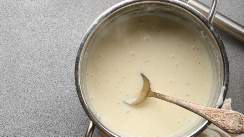 As noted by Little Hill Farm, it's not so much what each dish has in common, but rather what pasta al forno doesn't include, which is the rich, béchamel topping traditionally used in lasagna. According to Healthline, béchamel is one of the five French sauces that are known as a mother sauce that serves as a base for many recipes. Béchamel sauce is made from a roux, or equal parts of butter and flour cooked together, then milk is added and slowly heated to create a rich, silky sauce.