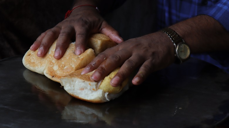 If you want to start your day with a satisfying snack that is sure to give you an instant energy boost, do we have the sandwich for you. Get ready to meet the carb-laden vada pav, a beloved street food with origins in the heart of Mumbai. Whether you're vegetarian or simply appreciate biting into a burger-like meal, vada pav makes for a convenient, easy treat. And if you like potatoes — especially fried potatoes, with that unmistakable crunchy exterior, or can appreciate a solid mashed potato rolls recipe – hold onto your seat.