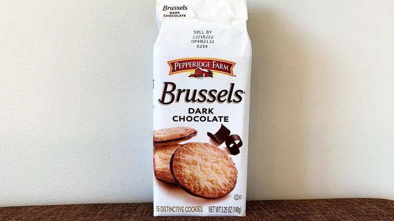 Brussels fall into Pepperidge Farm's "Distinctive Cookies" category, and it's easy to see why. Brussels are a sandwich cookie, with the "bread" consisting of exceptionally thin, pale ivory lace cookies. According to King Arthur Baking, lace cookies have just enough flour to stop them from spreading into each other and off the baking sheet. This means they stay delicate but have enough structure to prevent total collapse.