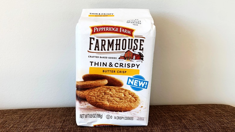 The Farmhouse Thin and Crispy subsection of Pepperidge Farm cookies is a relative newcomer. Cunningly thin and crispy cookies that melt in your mouth, these surprisingly flavorful treats get baked with care using real ingredients like creamery butter, eggs, and vanilla extract. That first list item stands out supremely: Butter seems to seep into every possible molecule of these aptly named Farmhouse Thin and Crispy Buttercrisps.